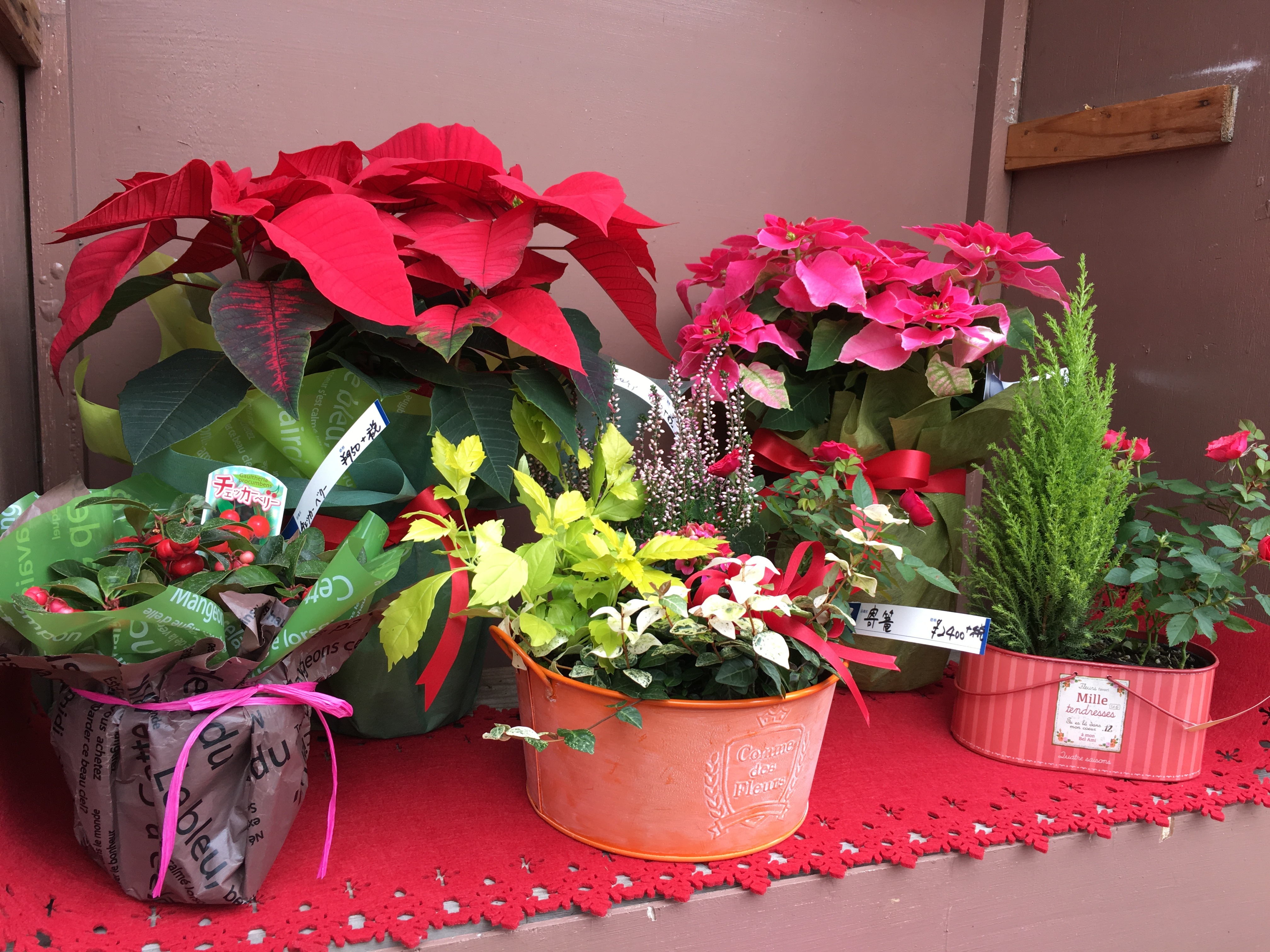 長持ち重視、お外にも飾れる!のは、鉢物。クリスマスにもOKな、ポインセチアや寄せかご多数ございます!